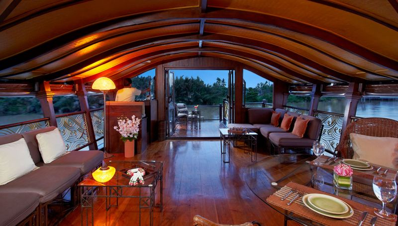 19:00 hrs. Relax and freshen up in your private en-suite stateroom before returning to the deck for aperitifs and Thai canapes.