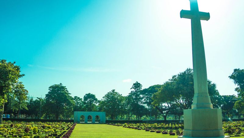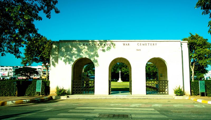Continue to Kanchanaburi War Cemetery. It contains the remains of 6,982 war prisoners (mostly the British, Dutch, Australian and American) who lost their lives during the construction of the Bridge over the River Kwai and the railway to Burma (the Death Railway).