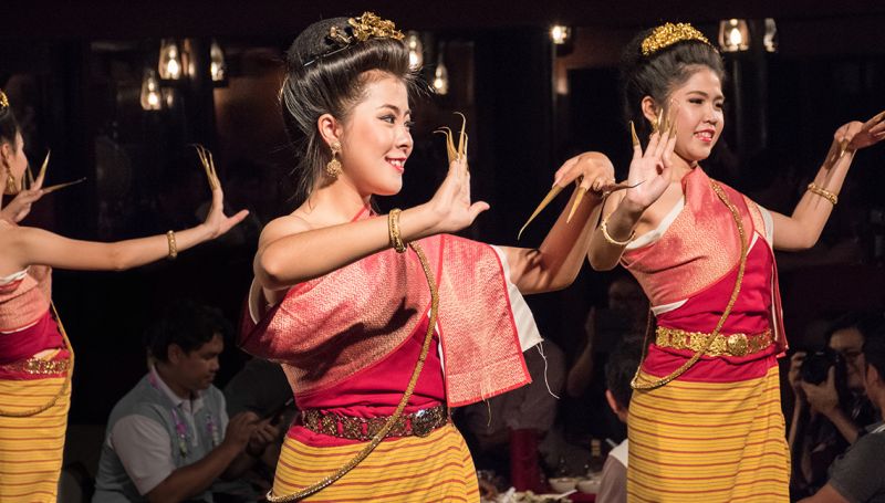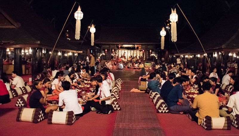 The dishes are all northern Thai delicacies. While guest enjoy the meal there are usually performances of traditional northern Thai Lanna dances and music such as Fingernail dance, Sword dance, Candle dance, Ramwong dance and Firework displays.