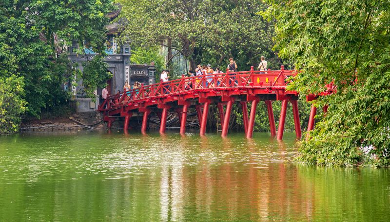 Visit Hoan Kiem Lake, Ngoc Son Temple and the Rising Sun bridge