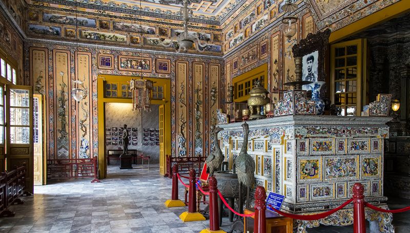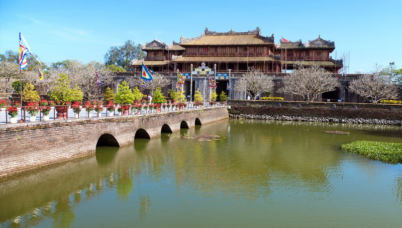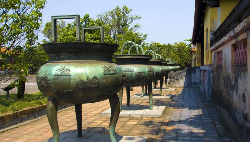 Located in the heart of Hue is the Imperial Citadel, a vast complex built in the early 19th century and modelled after the Forbidden City of Peking. The original walls stretched for 10 km and were surrounded by a wide moat. Today, most of the buildings have been destroyed due to bombing during the Vietnam-American War, but the monuments that remain provide a fascinating glimpse into the court life of the Nguyen Dynasty. Approach the city past the striking Flag Tower, where a giant Vietnamese flag waves proudly overhead, to the imposing Ngo Mon Gate, the main entrance to the Imperial Enclosure. Enter into an area of spacious courtyards and serene lotus ponds, and visit Dien Tho Residence (Dien Tho palace) is where the Queen mother lived, visit Thai Hoa Palace, the magnificently decorated reception hall, the Halls of the Mandarins, and the original Nine Dynastic Urns, among other sites.