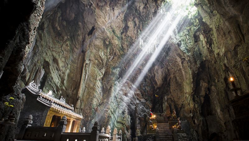 – Marble Mountains consist of 5 stone hillocks, once islands, made of marble. Each is said to represent one of the five elements of the universe. The largest and most famous, Thuy Son, has a number of natural caves in which Buddhist sanctuaries have been built over the centuries. When the Champas ruled this area, these same caves were used as Hindu shrines. Tam Than located in Marble Mountain near Thuy Son.
