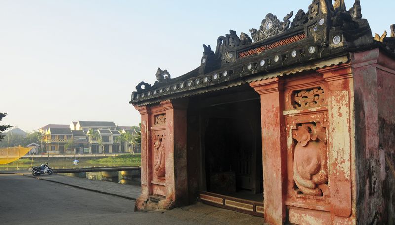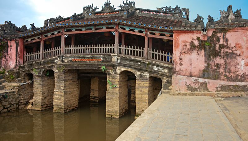 – Japanese Covered Bridge Pagoda the first bridge on this site was constructed in 1593 by the Japanese community of Hoi An to link the town with the Chinese quarters across the stream. The bridge was provided with a roof so it could be used as a shelter from rain and sun.