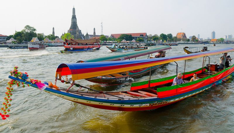 Take a comfortable long-tail motor boat trip along the Chao Phraya River and canals in Thonburi area. You will be treated to a spectacular and colorful scenery of Thai life along the river banks.