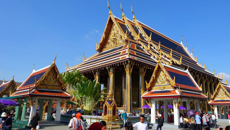 Visit The Grand Palace, an area of 218,400 sq. metres and is surrounded by walls built in 1782. The length of the four walls is 1,900 metres. Within these walls are situated government offices and the Chapel Royal of the Emerald Buddha besides the royal residences.