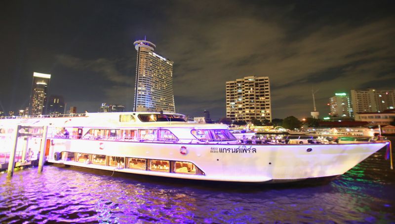 19:30 hrs Departure from River City Pier by Grand Pearl Cruise.Dinner is served under moonlight, with Live Music in a serenade atmosphere and a Thai Classical Dance Show. You will delight in the Thai and International cuisine offerings in a sumptuous buffet with a Sushi corner prepared with high skill and renowned car to sooth your pallet and enhance your experience with us.While you enjoy your drinks, take in the beautiful night-lit scenery on both side of the Chao Phraya River. Our captain will pilot the boat up- river. We will ensure the opportunity for you to take snapshot of the two most magnificent night views of Bangkok.Enjoy the beautiful night scenery on both side of Chaophraya River. Absorbed and get fascinated with magnificent architectures standing elegant just before the river in the night time with decoration of lights beside of thr charming of the riverside. For instance, the Temple Of Dawn, The Grand Palace & Wat Phra Kaew , Bang Khunprom Palace, Kanlayanamitr Temple and a string of the World Class Water Front Hotels.