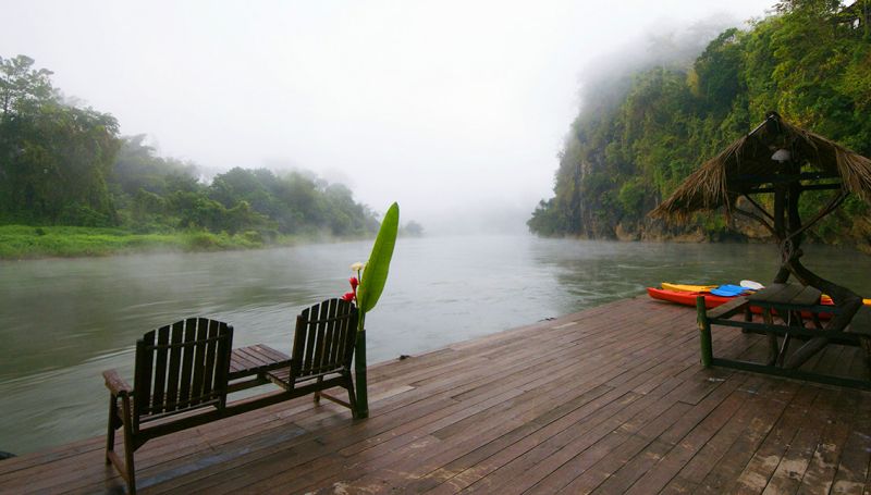 09.00 Check-out and Take a long-tailed boat from pier to get to the River Kwai Jungle Rafts, passing by unspoiled mountainous jungle scenery.