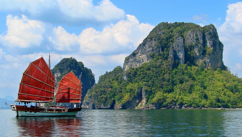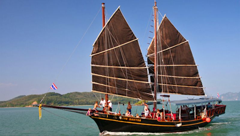 A traditional junk rigged schooner that traverses the lush tropical archipelago from Phuket to Phang Nga Bay.