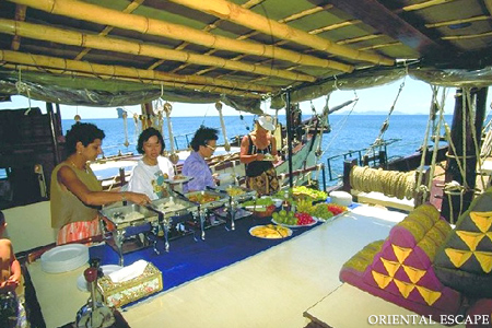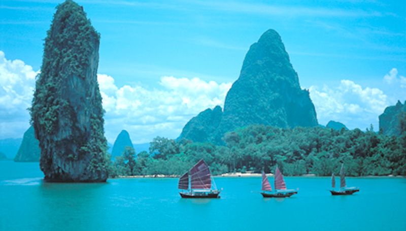 09:00 hrsEmbark onboard the JUNE BAHTRA for a 09:00 hrs departure and enjoy your cruise through the enchanting and breathtaking Phang Nga Bay. Around noon, you will arrive at James Bond Island and continue your journey by long tail boat through the mangrove delta and the Grotto Cave to the Sea Gypsy village. A delicious Thai buffet lunch is served back on board, then, the afternoon is free to relax, sunbathe and swim.