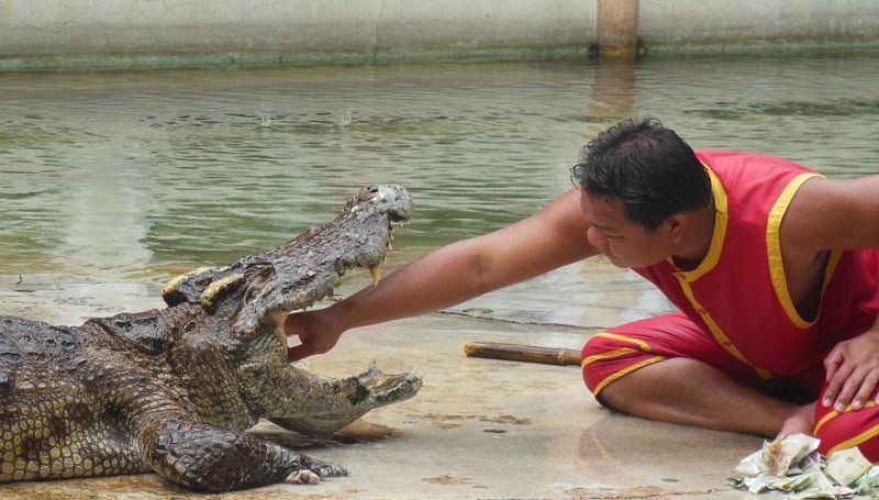 Visit Samut Prakan Crocodile Farm and ZooThe Samut Prakan Crocodile Farm and Zoo is now reputed to be the largest crocodile farm in the world. The Farm has over 30,000 crocodiles of different kinds, which are kept in various pits. There are daily shows which feature catching crocodiles with bare-hands and placing the Keeper’s Head in their mouths etc. Show times are every hour from opening to closing. Elephant shows are from 09:30 thru 16:30 hr.