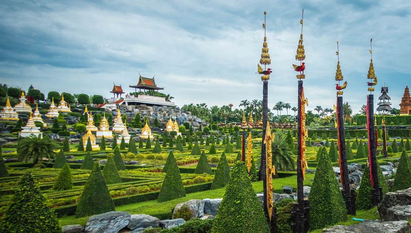 Visit Nong Nooch Tropical Garden, an attractive tourist spot in Chonburi that features botanical garden, zoo and Thai Cultural Center with impressive shows.The vast area of the recreational park includes two lakes, bonsai, cactus, palm, and bromeliad gardens, a hothouse for orchids and ferns and a showcase of such animals as tigers, elephants, chimpanzees or parrots. The beautiful landscape also locates Thai Cultural Center, presenting groups of traditional Thai houses and cultural shows such as martial arts, hill tribe music and dance, a Thai wedding ceremony, a Buddhist ordination ceremony as well as elephant show, performing three times a day. A collection of Thai antiques is also exhibited at this tropical garden, where visitors can taste traditional Thai food. Souvenirs and handicrafts from all over the kingdom can be purchased at the garden’s shopping mall.