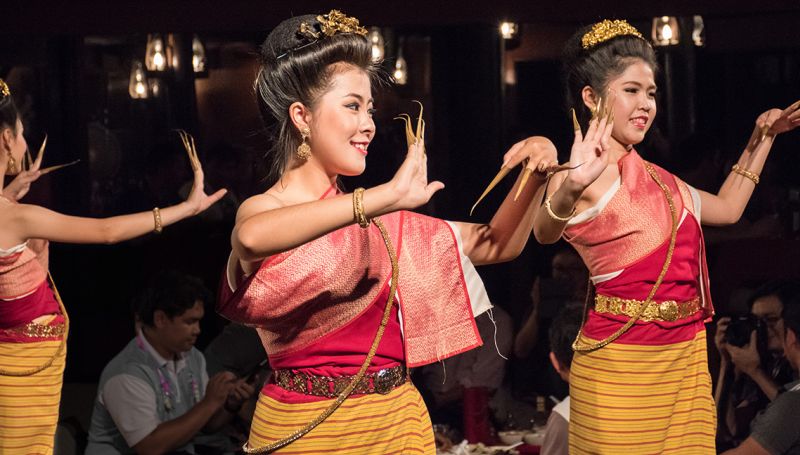 The dishes are all northern Thai delicacies. While guest enjoy the meal there are usually performances of traditional northern Thai Lanna dances and music such as Fingernail dance, Sword dance, Candle dance, Ramwong dance and Firework displays.