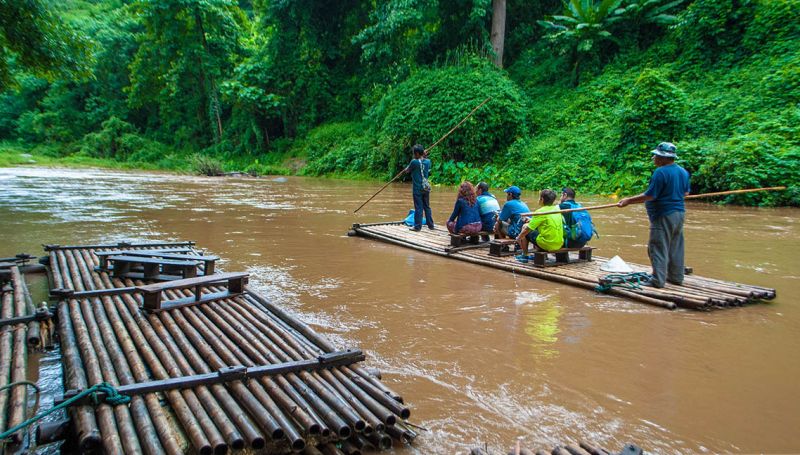 Take a leisurely cruise along the rural Mae Taeng River by Bamboo River Rafting for 45 minutes. Softly moving along the river while relaxing as the rafts men pole you down through farm houses and stunning green scenery.