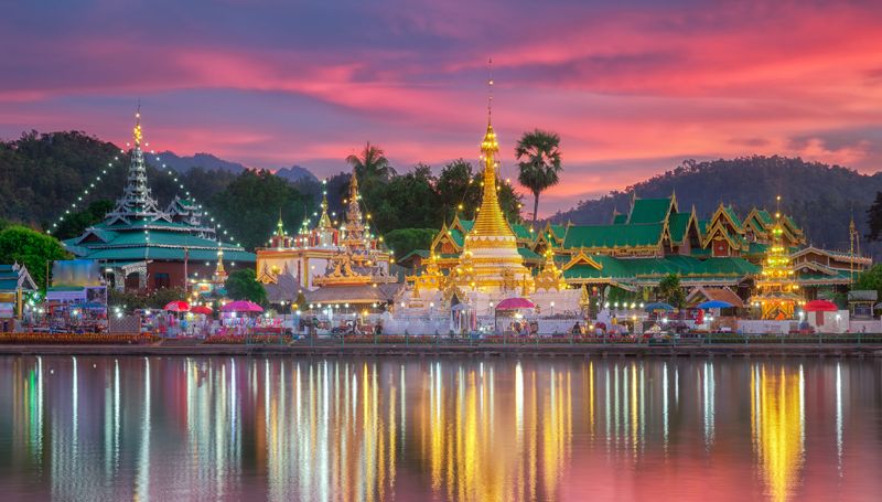 Continue to Wat Jong Klang and Wat Jong Kum, magnificent Burmese style temples; there are several interesting items such as wooden figurines of human and animals depicted which means one of odd stories of former incarnations of the Buddha created by Burmese craftsmen.
