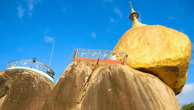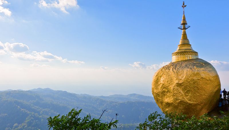 Visit Kyaikhtiyo (the Golden Rock), one of the most sacred pilgrimage sites in Myanmar, the shrine at the top of Mt. Kyaikto seems to defy gravity. Perched on the edge of a sheer cliff is a giant golden boulder topped with a gleaming stupa. Particularly stunning at sunset and sunrise, when a magical atmosphere suffuses the shrine.