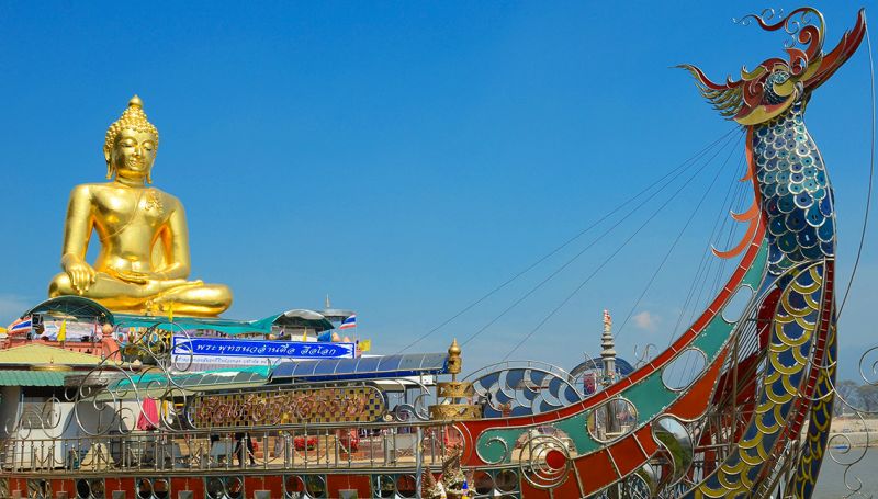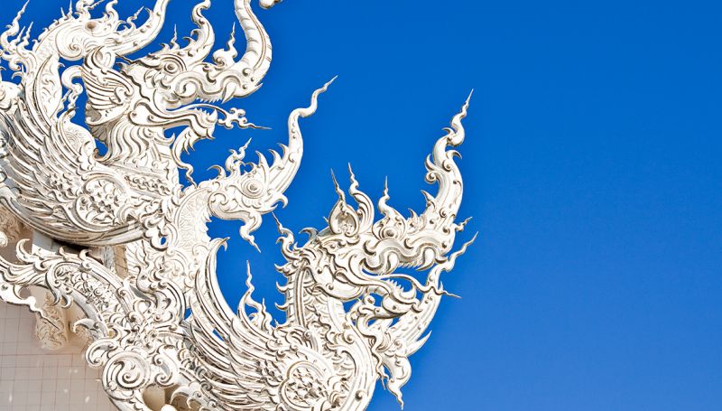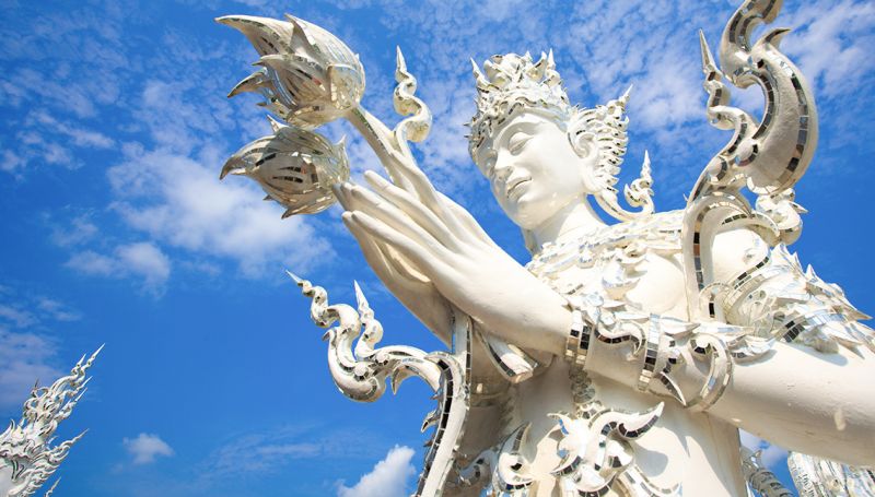 Visit Rong Khun Temple (White’s Temple), designed by the famous national artist. The main temple building is a distinctive white color, decorated with fragments of reflective glass which can be seen from afar.