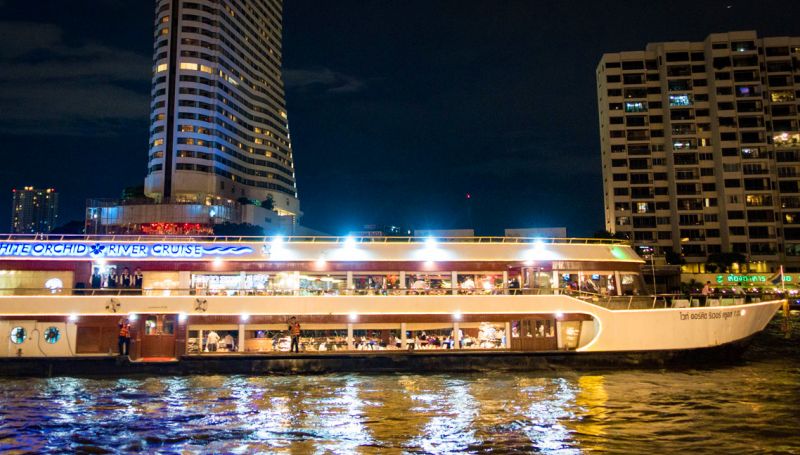 White Orchid River Cruise, Newest luxury cruise ships of the Chao Phraya River. Bangkok With a total of 400 passengers at various facilities on the White Orchid River Cruise Daily Cruise service for Bangkok Dinner Cruise.