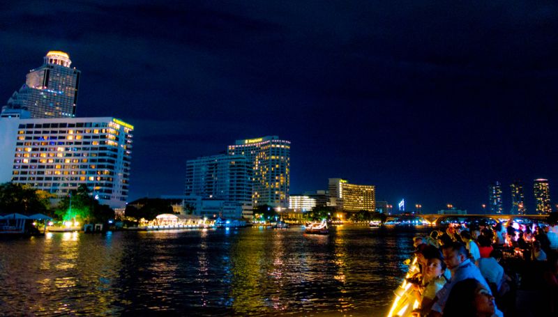 Enjoy the beautiful night scenery on both side of Chaophraya River. Absorbed and get fascinated with magnificent architectures standing elegant just before the river in the night time with decoration of lights beside of thr charming of the riverside. For instance, the Temple Of Dawn, The Grand Palace & Wat Phra Kaew , Bang Khunprom Palace, Kanlayanamitr Temple and a string of the World Class Water Front Hotels.